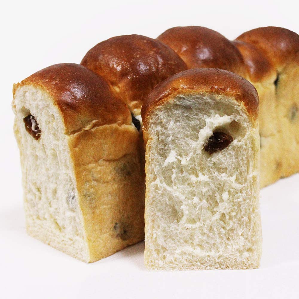創業明治25年の愛媛の老舗ベーカリーで人気のふわふわレーズンパン。長さ約25cm・約5cm・高さ約10cm。